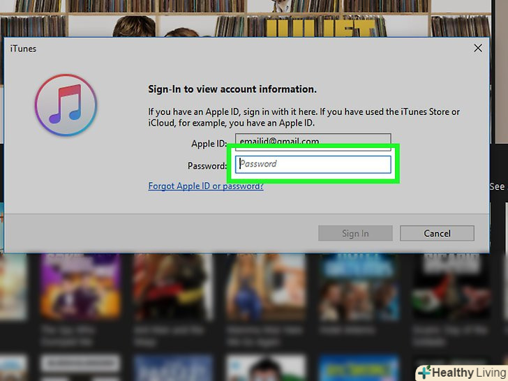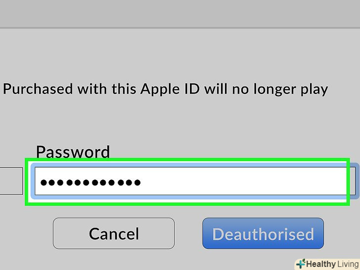 Введіть пароль Apple ID, коли з'явиться запит. необхідно аутентифікувати свій аккаунт, щоб деавторизувати його. Введіть пароль у рядку під адресою електронної пошти. Переконайтеся, що відображається правильна адреса електронної пошти, щоб увійти в потрібний обліковий запис. Введіть пароль Apple ID, коли з'явиться запит. необхідно аутентифікувати свій аккаунт, щоб деавторизувати його. Введіть пароль у рядку під адресою електронної пошти. Переконайтеся, що відображається правильна адреса електронної пошти, щоб увійти в потрібний обліковий запис.