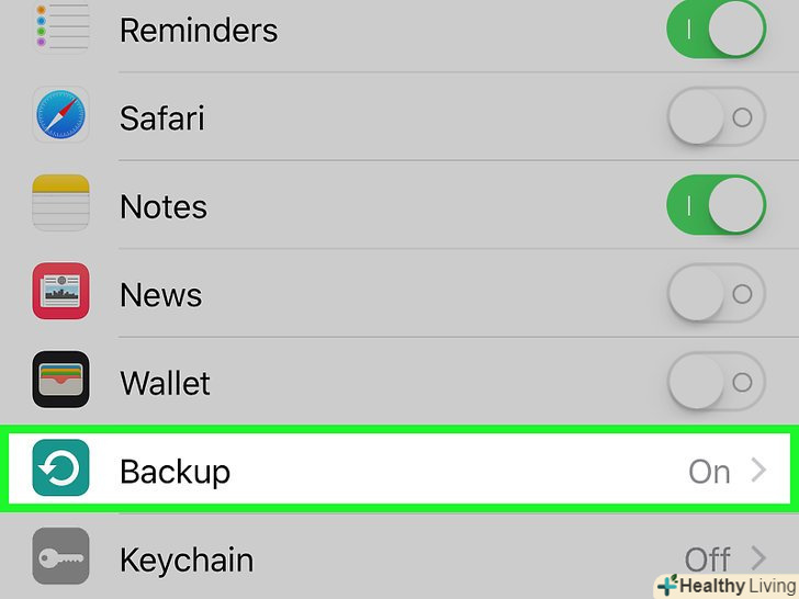 ТоркнітьсяВийти.ви знайдете цю опцію у верхньому правому куті. ТоркнітьсяВийти.ви знайдете цю опцію у верхньому правому куті.- Якщо ви хочете зберегти в iCloud контакти, записи календаря, новини, зв'язки ключів і історію Safari, пересуньте повзунки у елементів, які будуть збережені.