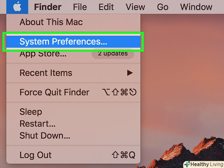 Відкрийте меню Apple.клацніть по логотипу Apple в лівому верхньому кутку. Відкриється випадаюче меню. Відкрийте меню Apple.клацніть по логотипу Apple в лівому верхньому кутку. Відкриється випадаюче меню.