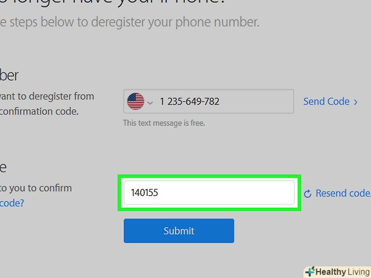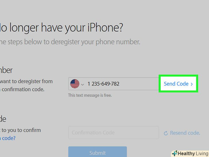 Клацніть поНадіслати код.ви знайдете цю опцію праворуч від рядка "Номер телефону". Компанія Apple відправить на вказаний номер СМС-повідомлення з перевірочним кодом. Клацніть поНадіслати код.ви знайдете цю опцію праворуч від рядка "Номер телефону". Компанія Apple відправить на вказаний номер СМС-повідомлення з перевірочним кодом.