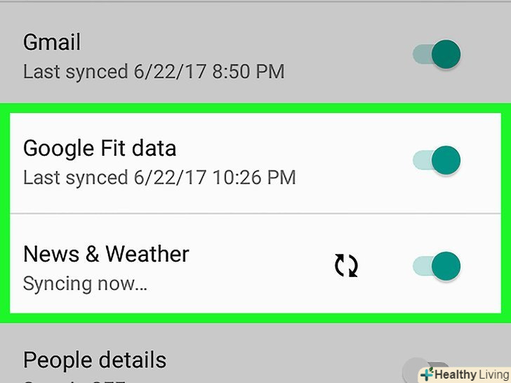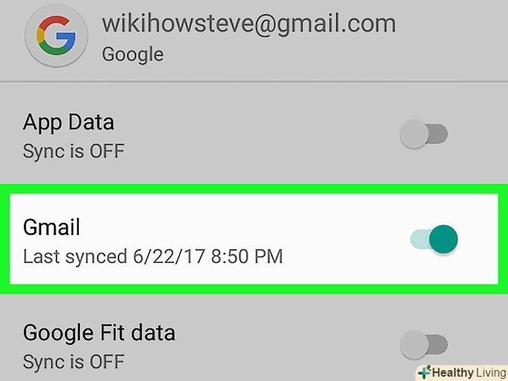 Натисніть на електронну пошту, яку хочете синхронізувати.виберіть опцію Gmail. Це символ з синім фоном і"g". Перевірте активність синхронізації, - вона відображається значком з зеленими круглими стрілками.