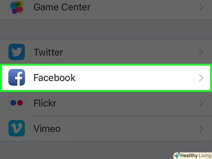 Відкрийте Налаштування, потім спустіться вниз і натисніть на "Facebook".