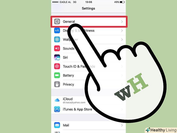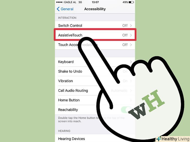 Натисніть на додаток "Налаштування", щоб відкрити його. AssistiveTouch-це корисна функція, яка дозволяє користувачам виконувати дії, які зазвичай відведені для механічних кнопок (наприклад, кнопки блокування екрану). Крім того, за допомогою AssistiveTouch можна повертати екран в різні боки, але тільки в тих додатках, які підтримують подібний режим. Варто згадати, що перед використанням цієї функції потрібно буде відключити блокування повороту екрану телефону.- Додаток "Налаштування" виглядає як сіра Шестерня і містить всі настроюються опції вашого iPhone, від базових до розширених.[2]