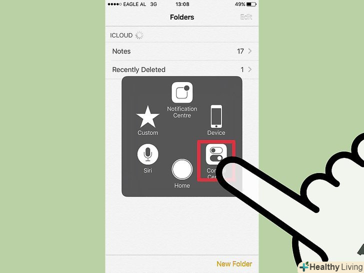 Натисніть на сірий квадрат.відкриється меню з такими опціями, як» Центр повідомлень«,» апарат «і»Пункт управління".- Зверніть увагу на опцію "додому" в нижній частині цього меню. Вибір цієї опції відповідає натисненню механічної кнопки»Home".