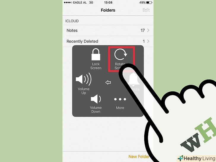 Натисніть "Вправо" або» вліво", щоб переключитися на альбомну орієнтацію.якщо запущене додаток підтримує обертання, зображення на телефоні перевернеться!- Щоб зменшити меню AssistiveTouch, натисніть на будь-яку точку екрана.