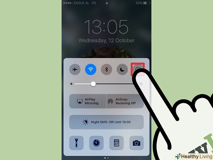 Проведіть по екрану знизу вгору.після цього відкриється Пункт управління, в якому можна включати або відключати заборону на поворот екрану.[1]