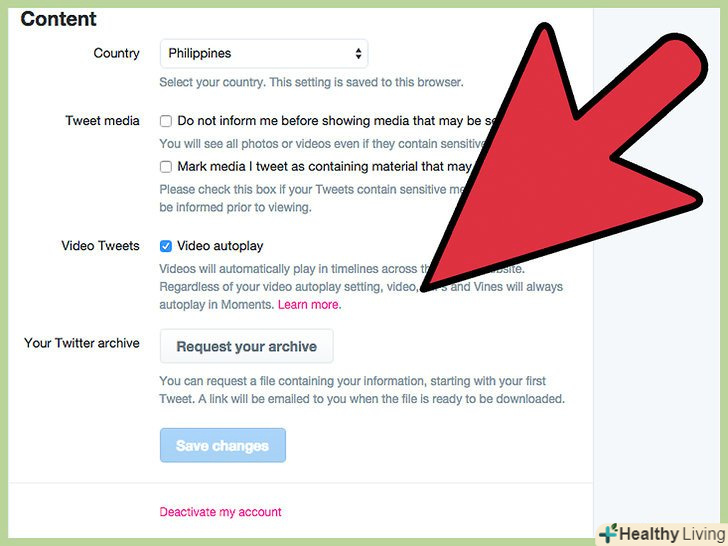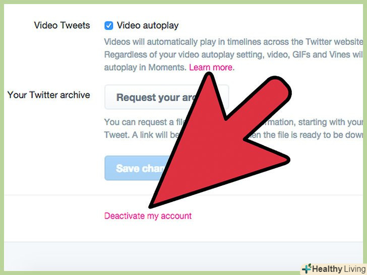 Дезактивація облікового запису Twitter з веб браузера на комп'ютері[2]