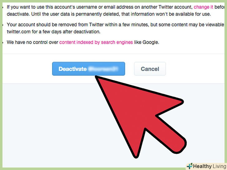 - Твіти, які ви публікуєте до дезактивації, можуть архівуватися пошуковими системами та іншими веб сайтами, які були пов'язані з вашим аккаунтом, тому вони все ж можуть бути видні в деяких місцях в Інтернеті після дезактивації.