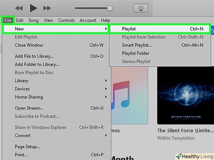Створіть новий плейлист в iTunes. перевага використання плейлистів полягає в тому, що ви можете вручну керувати своїми піснями на iPhone і відстежувати кількість вільного простору внизу екрану, завдяки чому ви не зможете перевищити максимальний ліміт. В меню Файл виберіть новий-Плейлист або натисніть на іконку «+», розташовану в лівому нижньому кутку iTunes. Створіть новий плейлист в iTunes. перевага використання плейлистів полягає в тому, що ви можете вручну керувати своїми піснями на iPhone і відстежувати кількість вільного простору внизу екрану, завдяки чому ви не зможете перевищити максимальний ліміт. В меню Файл виберіть новий-Плейлист або натисніть на іконку «+», розташовану в лівому нижньому кутку iTunes.