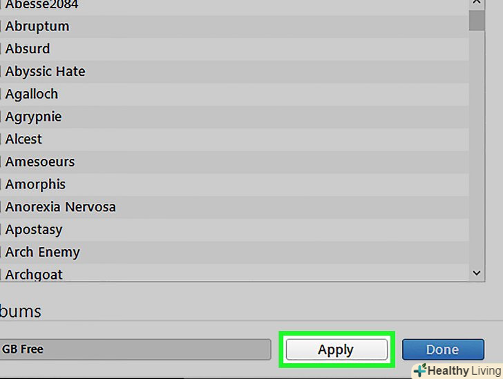 Натисніть Застосувати в правому нижньому кутку.iTunes автоматично почне синхронізуватися з iPhone. З цього моменту, кожен раз при підключенні вашого iPhone, iTunes буде автоматично синхронізувати нову музику на ваш пристрій. Якщо це не відбувається автоматично, відкрийте вкладку Огляд і в правому нижньому кутку натисніть Синхронізувати. Натисніть Застосувати в правому нижньому кутку.iTunes автоматично почне синхронізуватися з iPhone. З цього моменту, кожен раз при підключенні вашого iPhone, iTunes буде автоматично синхронізувати нову музику на ваш пристрій. Якщо це не відбувається автоматично, відкрийте вкладку Огляд і в правому нижньому кутку натисніть Синхронізувати.