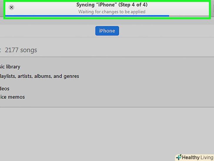 Дочекайтеся закінчення синхронізації і від'єднайте пристрій.переконайтеся, що ви від'єднали iPhone в iTunes, натиснувши на іконку вилучення поруч з назвою вашого iPhone, перш ніж від'єднувати кабель. Дочекайтеся закінчення синхронізації і від'єднайте пристрій.переконайтеся, що ви від'єднали iPhone в iTunes, натиснувши на іконку вилучення поруч з назвою вашого iPhone, перш ніж від'єднувати кабель.