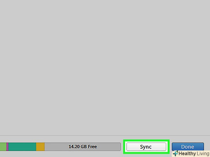 Якщо синхронізація не почалася, поверніться у вкладку Огляд у вікні управління iPhone. натисніть Синхронізувати в лівому нижньому кутку екрану. Ваш iPhone оновиться, і плейлист почне копіюватися на пристрій. Якщо синхронізація не почалася, поверніться у вкладку Огляд у вікні управління iPhone. натисніть Синхронізувати в лівому нижньому кутку екрану. Ваш iPhone оновиться, і плейлист почне копіюватися на пристрій.