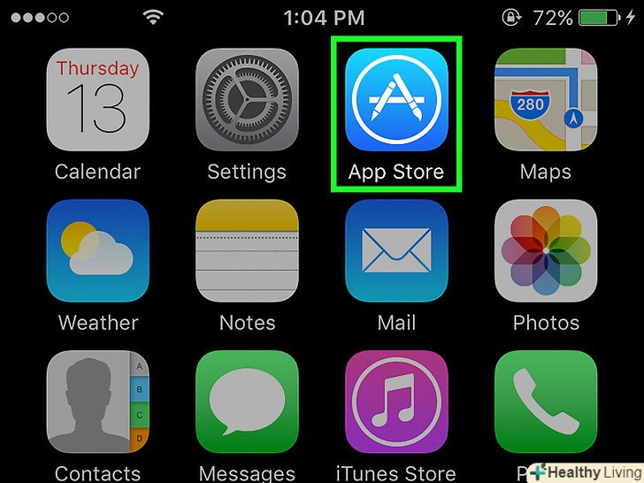 ВідкрийтеApp Store. Значок цього додатка являє собою білу букву " A " на синьому тлі. ВідкрийтеApp Store. Значок цього додатка являє собою білу букву " A " на синьому тлі.