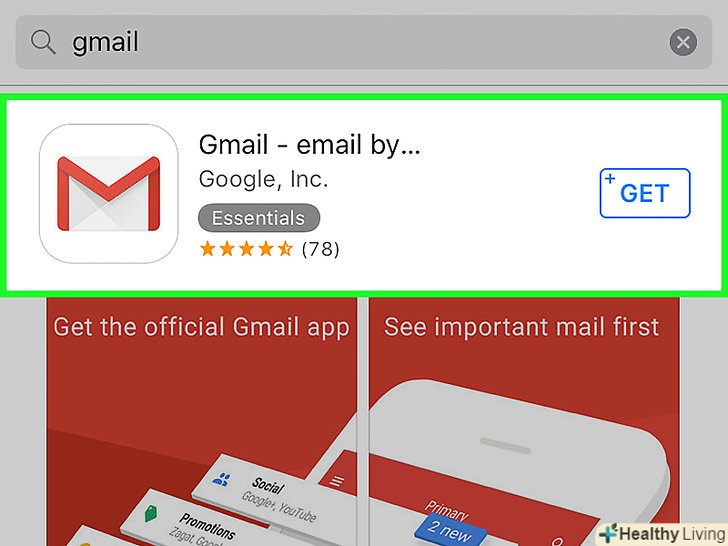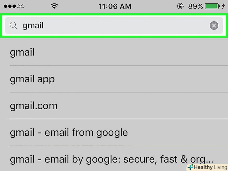Натисніть "Пошук" у нижній правій частині екрана.потім клацніть по пошуковому рядку у верхній частині екрана і почніть вводити слово Gmail. У міру введення під пошуковим рядком відобразяться відповідні додатки. Натисніть "Пошук" у нижній правій частині екрана.потім клацніть по пошуковому рядку у верхній частині екрана і почніть вводити слово Gmail. У міру введення під пошуковим рядком відобразяться відповідні додатки.