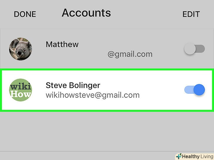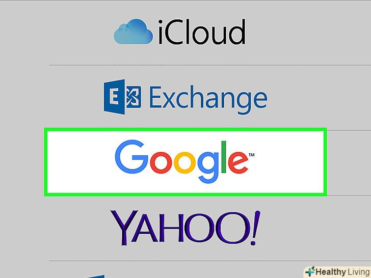Додайте свій обліковий запис Gmail.якщо вона присутня в списку "акаунти«, пересуньте повзунок в положення» включити" (він стане синім). Додайте свій обліковий запис Gmail.якщо вона присутня в списку "акаунти«, пересуньте повзунок в положення» включити" (він стане синім).- Якщо у списку вашого облікового запису Немає, Натисніть«Додати обліковий запис " (у нижній частині списку). Потім введіть свою адресу електронної пошти Gmail, натисніть »Далі«, введіть пароль, а потім натисніть »Далі ".