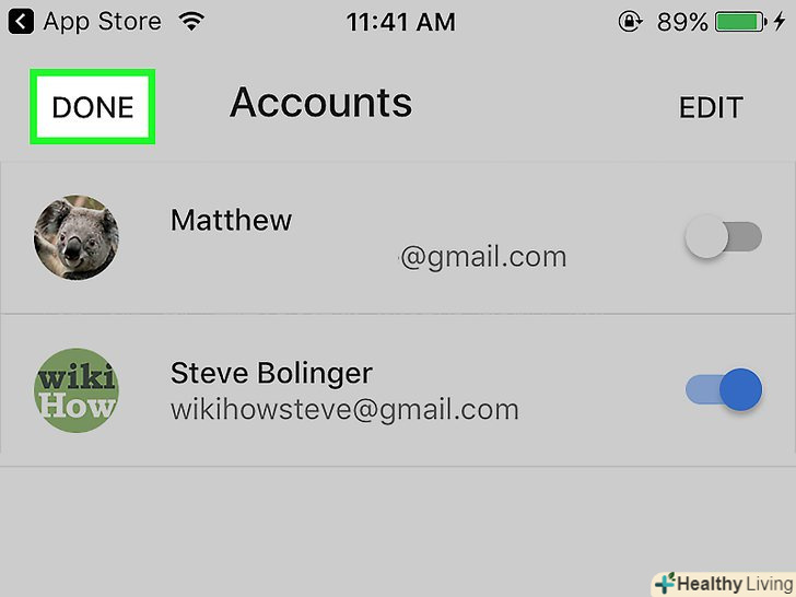 Натисніть < span class="nowrap" title="This is not a clickable button; it illustrates the button one should find." style="font-family: Segoe UI, Frutiger, Frutiger Linotype, Dejavu Sans, Helvetica Neue, Arial, sans-serif;letter-spacing:0px;padding:0em .6em; border:1px solid; border-color:#AAA #555 #555 #AAA; -moz-border-radius: 0px; -webkit-border-radius: 0px; border-radius: 0px; background-color: #F2F2F2; background-image: -moz-linear-gradient(top, #FCFCFC, #E0E0E0); background-image: -o-linear-gradient(top, #FCFCFC, #E0E0E0); background-image: - webkit-linear-gradient(top, # FCFCFC, #E0E0E0); background-image: linear-gradient(top, #FCFCFC, #E0E0E0);">Готово.ця кнопка знаходиться у верхньому лівому куті екрана. Ви налаштували свій обліковий запис Gmail на iPhone за допомогою програми, розробленої компанією Google. Натисніть < span class="nowrap" title="This is not a clickable button; it illustrates the button one should find." style="font-family: Segoe UI, Frutiger, Frutiger Linotype, Dejavu Sans, Helvetica Neue, Arial, sans-serif;letter-spacing:0px;padding:0em .6em; border:1px solid; border-color:#AAA #555 #555 #AAA; -moz-border-radius: 0px; -webkit-border-radius: 0px; border-radius: 0px; background-color: #F2F2F2; background-image: -moz-linear-gradient(top, #FCFCFC, #E0E0E0); background-image: -o-linear-gradient(top, #FCFCFC, #E0E0E0); background-image: - webkit-linear-gradient(top, # FCFCFC, #E0E0E0); background-image: linear-gradient(top, #FCFCFC, #E0E0E0);">Готово.ця кнопка знаходиться у верхньому лівому куті екрана. Ви налаштували свій обліковий запис Gmail на iPhone за допомогою програми, розробленої компанією Google.- Щоб додати або відредагувати облікові записи Gmail, натисніть " ≡ " (у верхньому лівому куті програми Inbox), клацніть по стрілці, яка спрямована вниз і знаходиться праворуч від адреси електронної пошти Gmail, а потім натисніть«Управління акаунтами».