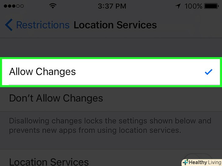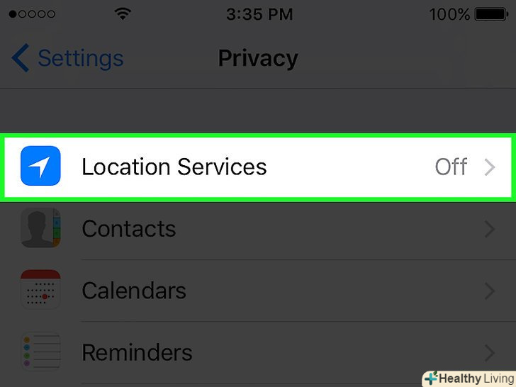 Пересуньте повзунок уСлужби геолокації в положення «включити».на екрані з'явиться список додатків. Пересуньте повзунок уСлужби геолокації в положення «включити».на екрані з'явиться список додатків.- Якщо повзунок не активний, служба геолокації відключена в меню "Обмеження". У цьому випадку перейдіть до наступного розділу.