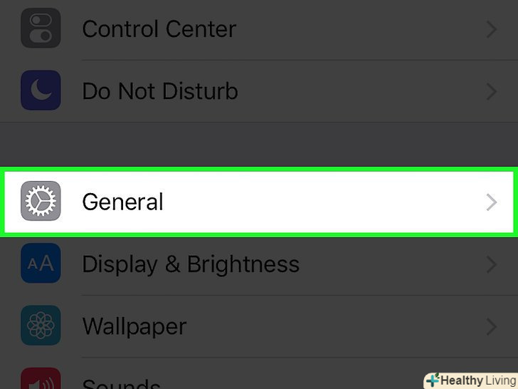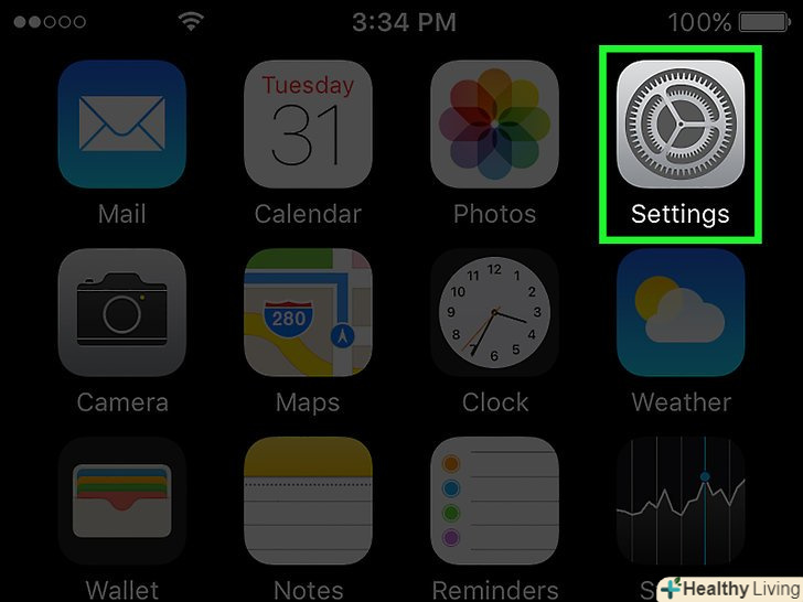 Запустіть програму < span class="nowrap" title="This is not a clickable button; it illustrates the button one should find." style="font-family: Segoe UI, Frutiger, Frutiger Linotype, Dejavu Sans, Helvetica Neue, Arial, sans-serif;letter-spacing:0px;padding:0em .6em; border:1px solid; border-color:#AAA #555 #555 #AAA; -moz-border-radius: 0px; -webkit-border-radius: 0px; border-radius: 0px; background-color: #F2F2F2; background-image: -moz-linear-gradient(top, #FCFCFC, #E0E0E0); background-image: -o-linear-gradient(top, #FCFCFC, #E0E0E0); background-image: - webkit-linear-gradient(top, # FCFCFC, #E0E0E0); background-image: linear-gradient(top, #FCFCFC, #E0E0E0);">Налаштування.натисніть на значок у вигляді шестерінки на головному екрані або в папці «утиліти». Запустіть програму < span class="nowrap" title="This is not a clickable button; it illustrates the button one should find." style="font-family: Segoe UI, Frutiger, Frutiger Linotype, Dejavu Sans, Helvetica Neue, Arial, sans-serif;letter-spacing:0px;padding:0em .6em; border:1px solid; border-color:#AAA #555 #555 #AAA; -moz-border-radius: 0px; -webkit-border-radius: 0px; border-radius: 0px; background-color: #F2F2F2; background-image: -moz-linear-gradient(top, #FCFCFC, #E0E0E0); background-image: -o-linear-gradient(top, #FCFCFC, #E0E0E0); background-image: - webkit-linear-gradient(top, # FCFCFC, #E0E0E0); background-image: linear-gradient(top, #FCFCFC, #E0E0E0);">Налаштування.натисніть на значок у вигляді шестерінки на головному екрані або в папці «утиліти».- Якщо ви не бачите цього значка, проведіть по Головному екрану зверху вниз і введіть "налаштування" в панелі пошуку Spotlight.