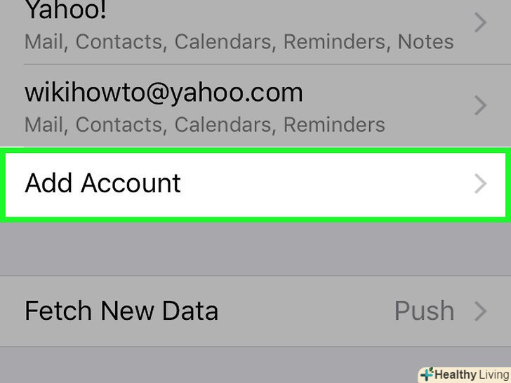 Натисніть < span class="nowrap" title="This is not a clickable button; it illustrates the button one should find." style="font-family: Segoe UI, Frutiger, Frutiger Linotype, Dejavu Sans, Helvetica Neue, Arial, sans-serif;letter-spacing:0px;padding:0em .6em; border:1px solid; border-color:#AAA #555 #555 #AAA; -moz-border-radius: 0px; -webkit-border-radius: 0px; border-radius: 0px; background-color: #F2F2F2; background-image: -moz-linear-gradient(top, #FCFCFC, #E0E0E0); background-image: -o-linear-gradient(top, #FCFCFC, #E0E0E0); background-image: - webkit-linear-gradient(top, # FCFCFC, #E0E0E0); background-image: linear-gradient(top, #FCFCFC, #E0E0E0);">додати аккаунт.ви знайдете цю опцію в нижній частині списку облікових записів, які синхронізуються з додатком "пошта".