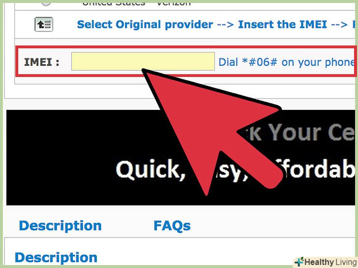 Введіть IMEI вашого телефону.це унікальний ідентифікаційний номер телефону.- Щоб дізнатися IMEI, наберіть*#06#