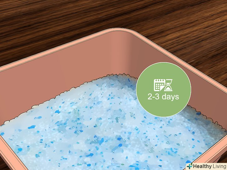 Спробуйте силікагелевий наповнювач для котячих лотків.він надзвичайно добре вбирає вологу і відмінно справляється з поглинанням вологи з пошкодженого водою телефону. Силікагелевий наповнювач можна придбати в будь-якому великому супермаркеті або зоомагазині.[1]- Не використовуйте інші види наповнювачів для котячих лотків. Глиняні або порошкові наповнювачі можуть прилипнути до телефону, перетворивши його в щось мокре і покрите глиною.