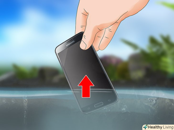 Негайно дістаньте телефон з води.якщо ви впустили телефон в унітаз, ванну або озеро, перш за все вам необхідно якомога швидше витягнути його з води. Чим довше телефон буде залишатися у воді, тим більше пошкоджень він отримає.[5]- Тривале перебування телефону у воді дасть їй час вбратися в більшу кількість внутрішніх електронних компонентів.