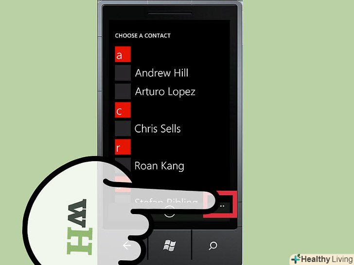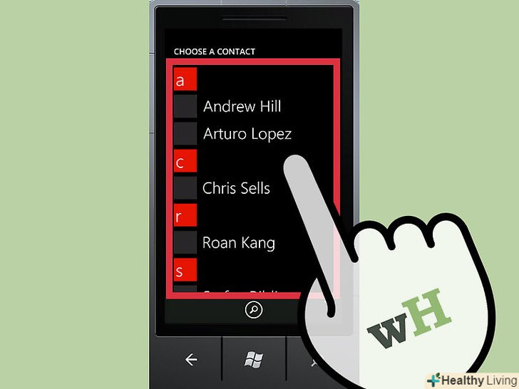 Відкрийте список контактів.натисніть на плитку "Телефон" на робочому столі Windows Phone, щоб відкрити список контактів.