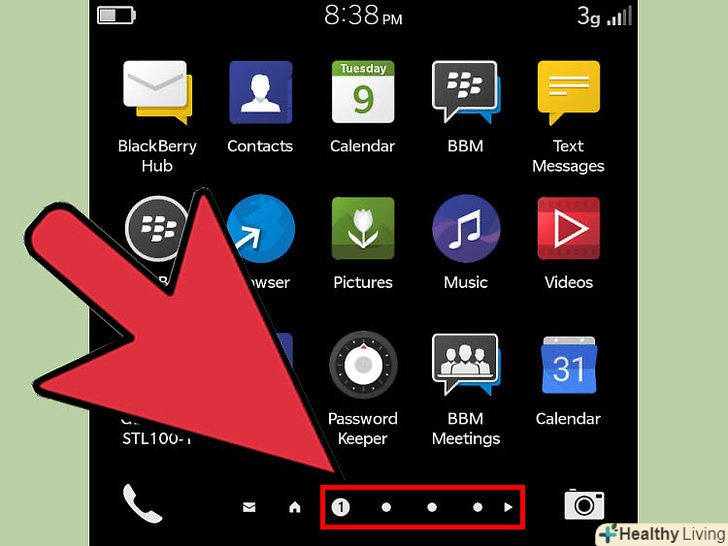 Відобразіть список програм.проведіть пальцем вліво, щоб побачити список додатків на телефоні Blackberry.