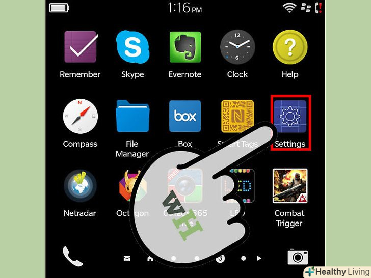 Відкрийте Settings / Налаштування.натисніть на іконку із зображенням шестерінки на екрані додатків, щоб відкрити системні налаштування пристрою BlackBerry.