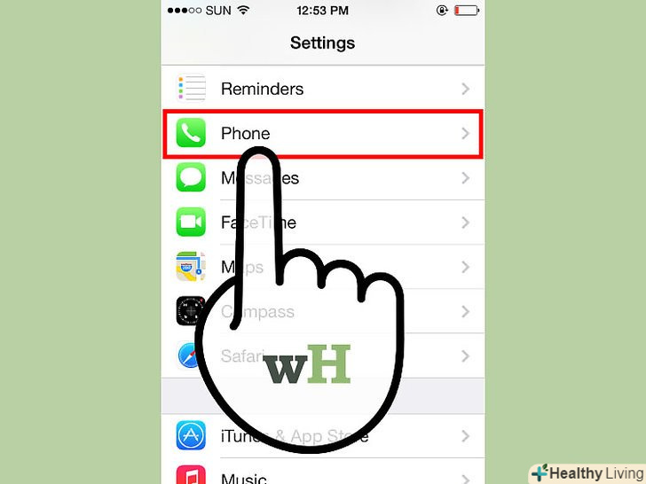 Відкрийте розділ Телефон.Виберіть «Телефон» зі списку в меню Налаштування.