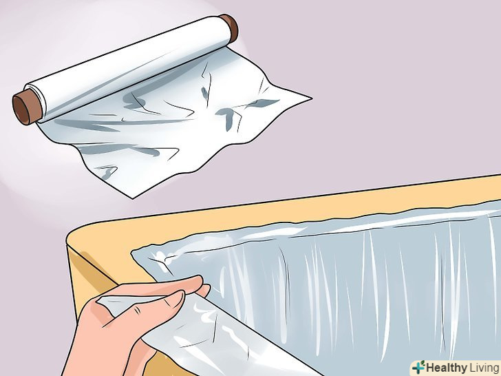 Обкласти стінки контейнера або відерця алюмінієвою фольгою.науково доведено, що добре відбиває світло алюмінієва фольга оберігає лід від танення краще, ніж інші матеріали.[3] перш ніж покласти лід в контейнер або відерце, постеліть в нього один шар алюмінієвої фольги.