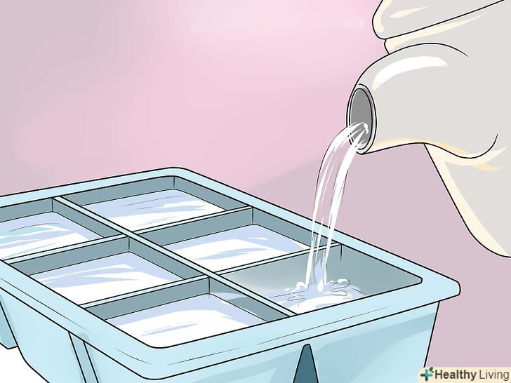 Залийте кип'ячену воду у великі форми для льоду.для отримання великих шматків льоду використовуйте великі форми для льоду або формочки для кексів. Не поспішаючи залийте воду в форми і помістіть їх в морозильну камеру.[4]- Подрібнений лід і дрібні кубики льоду тануть набагато швидше, ніж великі кубики і шматки. Великі шматки льоду мають меншу площу поверхні по відношенню до свого об'єму і маси, тому для їх нагрівання потрібно більше тепла.