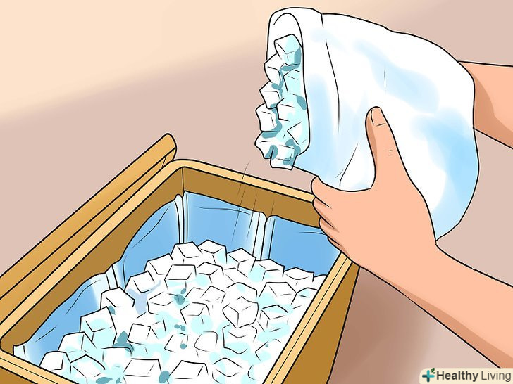 Для запобігання танення льоду використовуйте заморожені бульбашки для льоду, що застосовуються в медицині.вони допоможуть запобігти нагріванню контейнера, і лід не розтане до самого кінця вашої вечірки.[7]- Якщо Ви користуєтеся великим контейнером, в якості тари для льоду можна використовувати пластикові пляшки, заморозивши воду прямо в них. Поставивши пляшки в контейнер, обкласти їх з усіх боків льодом.