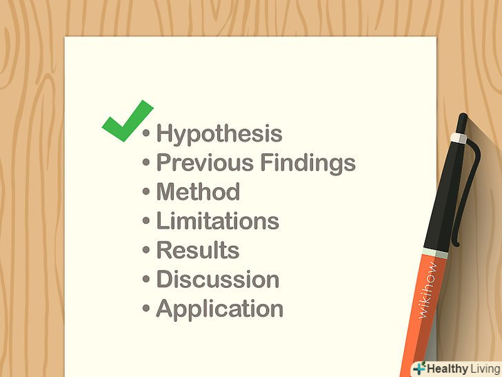 Зберіть всі дані воєдино.розділіть роботу на логічні розділи, зумовлені типом наукової роботи. Якщо це кількісне дослідження, воно повинно включати в себе вищезгадані розділи (тобто гіпотеза, попередні результати і так далі). Якщо ж це якісне дослідження, розділіть свою роботу на основні моменти і викладайте їх відповідно.- Розбийте інформацію на розділи і підрозділи. У кожному розділі мова повинна йти про окрему тезу.
