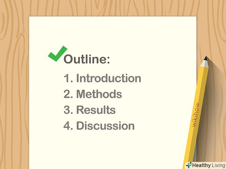 Складіть план своєї роботи.Упорядкуйте так, щоб він був зрозумілий і легко читаємо. Вирішіть, яку інформацію найкраще розмістити під кожним заголовком або розділом і не забудьте долучити свої джерела. Складання плану-це гарний початок для написання наукової роботи.- Почніть з основних тез, а потім додайте знайдені замітки, які підтримують ваші ідеї.[1]