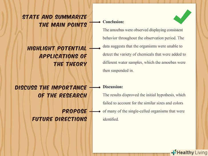 Напишіть аналіз і висновок.Скажіть читачам, що ви виявили, чим це важливо для галузі дослідження і які майбутні дослідження можна провести для просування цього дослідження. Намагайтеся не повторювати інформацію, яка вже згадувалася в роботі раніше.- Чітко викладіть і наведіть основні тези своєї наукової роботи.