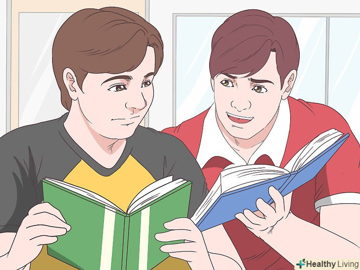 Читайте з помічником, якщо матеріал перевищує ваш рівень знань.помічником може бути ваш учитель, друг або батько. Виберіть людину, яка вище вас рівнем і який відповість на всі ваші запитання. Так вам буде простіше розібратися з незрозумілими місцями, а також обговорити текст.[2]- Якщо вам допомагає педагог, попросіть його скласти питання, які допоможуть розібратися в матеріалі. Перегляньте такі питання до початку читання, а в кінці спробуйте сформулювати відповіді.[3]