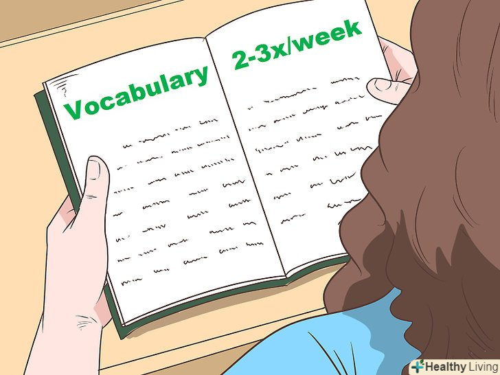 Підвищуйте свій словниковий запас, щоб краще розуміти книги.якщо ви не розумієте значення слова, то вам буде важко поліпшити здатність розуміти текст. Складіть приблизну думку про те, який рівень словникового запасу повинен бути у людини вашого віку, і почніть вивчати значення слів 2-3 рази в тиждень.[8]- Читайте зі словником і комп'ютером. Якщо зустрілося незнайоме слово, дізнайтеся його значення в словнику і запишіть. Час читання збільшиться, але це нормально.