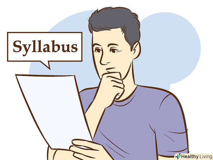 Повторіть навчальну програму.у ній викладено весь навчальний курс. Навчальна програма допоможе зрозуміти ключові ідеї та теми, які слід знати для іспиту. Повторіть програму, щоб виділити теми і підзаголовки. Хоча б повторіть такі пункти і розділи, щоб краще зрозуміти важливі концепти кожної теми.- Іноді викладачі вказують номери сторінок або глави в підручнику, які відповідають кожному розділу навчального плану. Обов'язково перегляньте такі сторінки і глави.