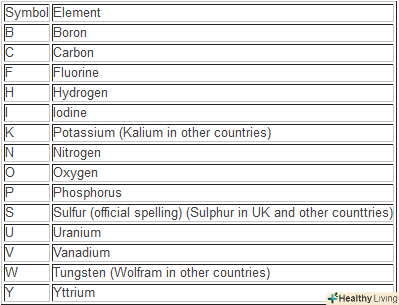 - Придивіться до відмінностей. елементи символізуються, як правило, двома літерами. Ось список елементів, які символізуються однією літерою: