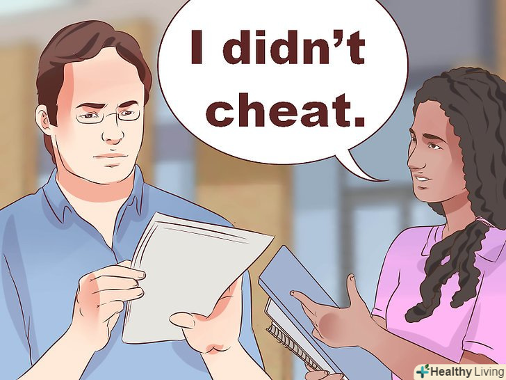 Скажіть, що ви не обманювали.якщо ви впевнені, що вам вдасться уникнути покарання, ризикніть. Важливо зобразити здивування, якщо вас запитають про списування. Уявіть, що ви багато вчилися і написали все самі, без шпаргалок. Що б ви відчули, якби вас звинуватили в списуванні? Запам'ятайте це відчуття.- Якщо вчитель звинувачує вас у плагіаті, скажіть, що ви використовували це джерело під час підготовки. Можливо, ви ненавмисно сформулювали свої думки тими ж словами, що і в джерелі інформації.