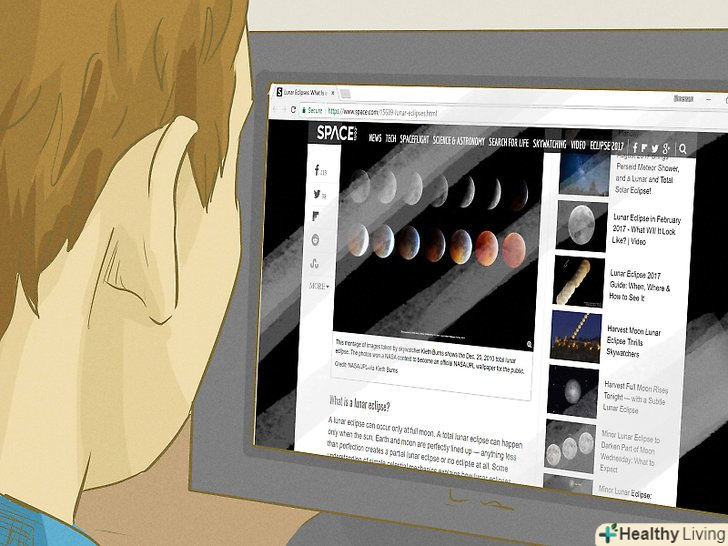 З'ясуйте, де і коли повинні відбутися затемнення.складно спостерігати затемнення, якщо не знати їх час і місце! Один з кращих способів дізнатися, коли повинні спостерігатися затемнення, полягає в тому, щоб стежити за новинами на надійних сайтах, які присвячені даному питанню. Крім того, можна використовувати відповідні книги і періодичні видання з астрономії. Інформацію про затемнення можна знайти на наступних сайтах:- присвячений затемненням сайт NASA. Тут ви знайдете інформацію про сонячні і місячні затемнення. Карти місць, в яких будуть спостерігатися сонячні затемнення: карта до 2020 року і карта на 2021-2040 роки.
