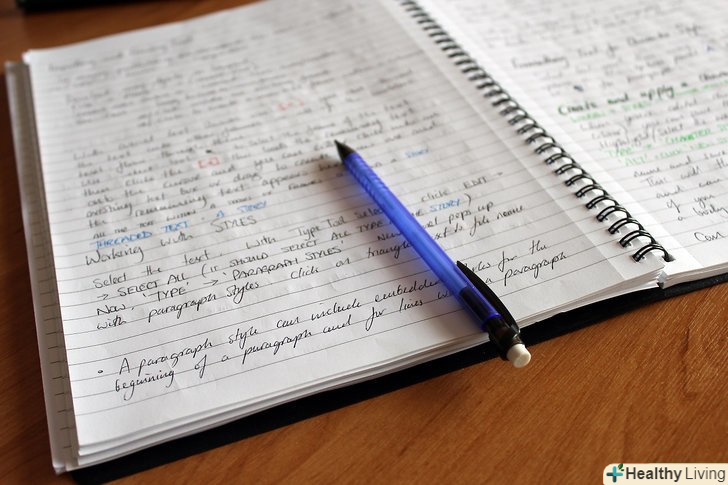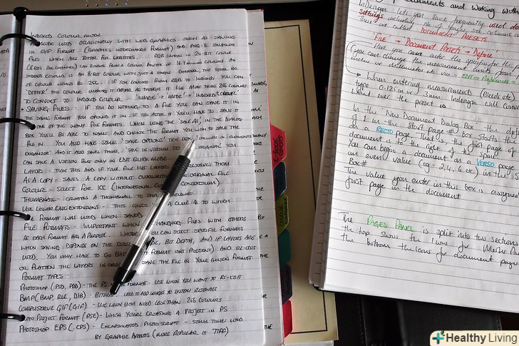 - За день або два до іспиту, перепишіть інформацію з блокнота в папку з трьома затискачами, роблячи все акуратно і організовано, дотримуючись форми і межі листи.