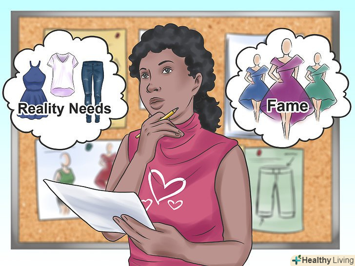 Стримайте свої амбіції.спочатку думайте про реальні потреби, а вже потім про славу. Модно виглядати здорово, але одяг не стане продаватися сама собою. Якщо ви плануєте стати дизайнером, ви будете одягати не тільки знаменитостей. Це менше 1% всіх людей - так ви на життя не заробите. Так, про відомі будинки моди пишуть в журналах, але це реклама, а не реальне життя. Насправді дизайнери потрібніше всього звичайним людям зі звичайними фігурами, які хочуть красиво одягатися. Тому не дивіться на них зверхньо, інакше ви ніколи не заробите грошей. Реальність така: ви творите не для себе, а для інших.