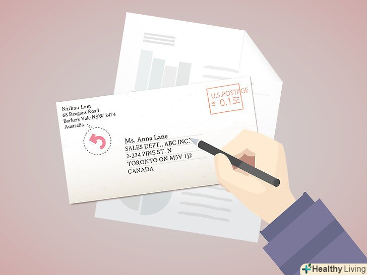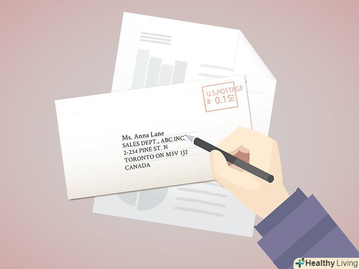 Напишіть "Canada" в останньому рядку.назва країни завжди повинна знаходитися на останньому рядку адреси, якщо тільки ви не відправляєте лист з Канади (в такому випадку цей рядок необов'язкова).