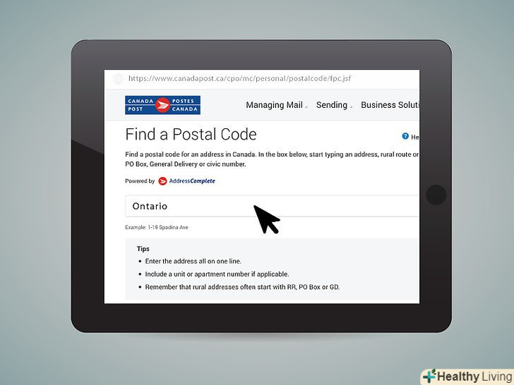 З'ясуйте правильний поштовий індекс і код провінції.у канадських адрес є особливі поштові індекси і коди провінцій для різних частин країни. Перш ніж писати адресу, з'ясуйте конкретні коди і правильні скорочення для вказівки провінцій.