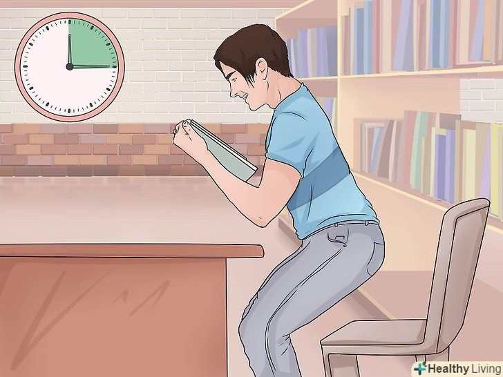 Вправляйтеся прямо за столом.ви можете посилити потік крові прямо за партою під час навчання. Якщо ви не хочете переривати заняття і виходити на 15-хвилинну прогулянку, спробуйте зайнятися фізичною активністю прямо там, де перебуваєте.[7]- Зробіть кілька присідань за столом. Встаньте зі стільця, а потім присядьте, не опускаючись на сидіння. Затримайтеся в такому положенні над стільцем приблизно на 10 секунд. Повторіть 20 разів.[8]