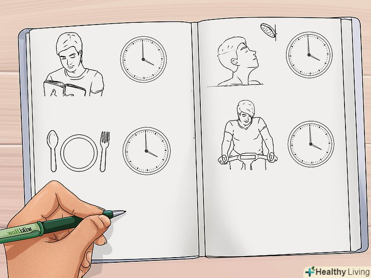 Знаходьте час для своїх тренувань.спочатку може бути непросто дотримуватися програми тренувань, які допоможуть вашому навчанню. Завжди пам'ятайте про те, яку велику користь приносять тренування вашим розумовим і когнітивним здібностям, і нагадуйте собі, що вони допоможуть поліпшити вашу успішність у навчанні.[15]- Сядьте і складіть список всіх своїх зобов'язань, занять і годин навчання. Не забудьте також врахувати час на сон, їжу та інші щоденні потреби, такі як душ. Подивіться, де б у своєму розпорядку ви могли вставити тренування.