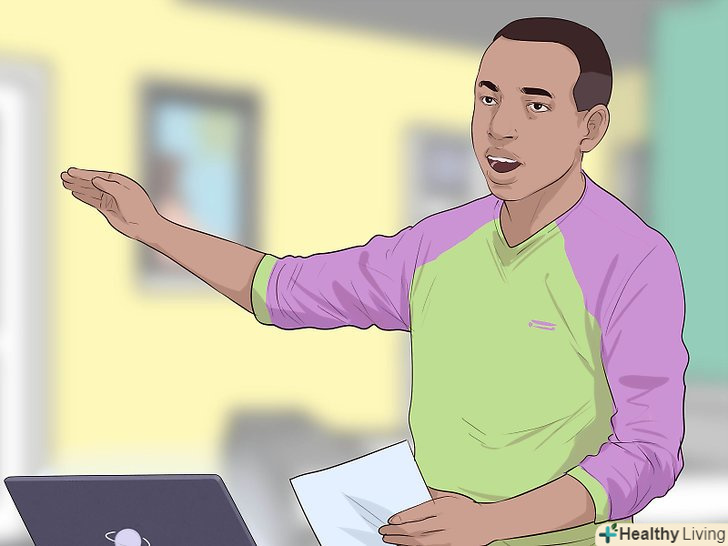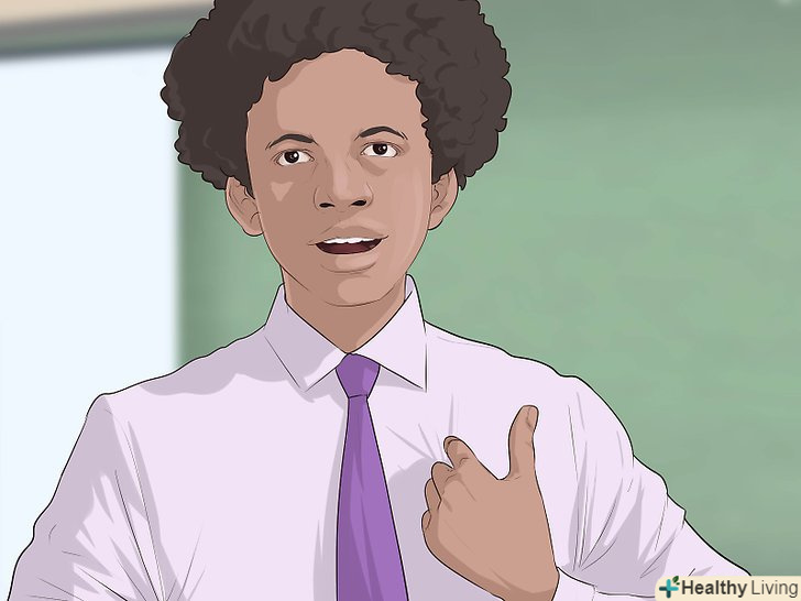 Багато людей нервують, коли їм потрібно вимовити промову, особливо якщо у них було мало часу на підготовку.однак якщо ви будете говорити з упевненістю в собі, глядачі будуть Вам аплодувати. Крім того, вони будуть так раді тому, що це не їм потрібно говорити, що, можливо, підтримають вас ще сильніше![5]- Ось прості способи набути впевненості в собі перед початком виступу: глибоко і повільно вдихніть або закрийте очі і уявіть місце, в якому ви щасливі.
