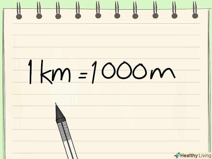 Запам'ятайте, що таке кілометр.кілометр-це одиниця виміру довжини в метричній системі мір. У цій системі кожна одиниця кратна 10 від попередньої одиниці. 1 км = 1000 м.[3]
